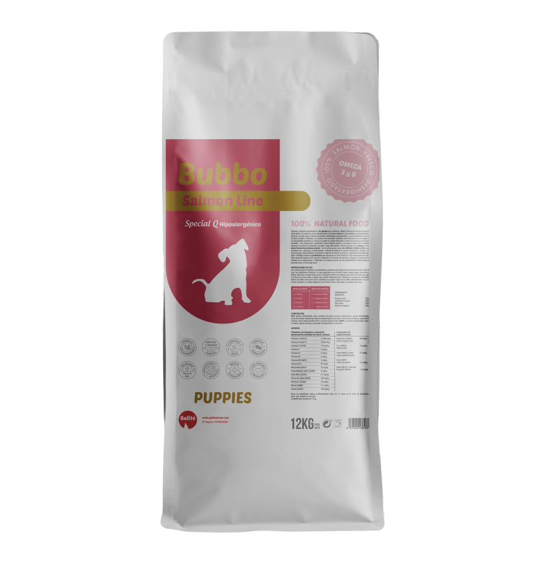 Alimento completo de consumo diario, indicado para cualquier cachorro e indispensable para aquellos que quieran prevenir problemas de desarrollo óseo y articular, combatir o prevenir alergias alimentarias, así como potenciar el sistema inmunitario y por tanto prevenir enfermedades infecciosas. Rico en proteínas de alto valor biológico, por tanto con un alto valor nutricional y una alta digestibilidad.