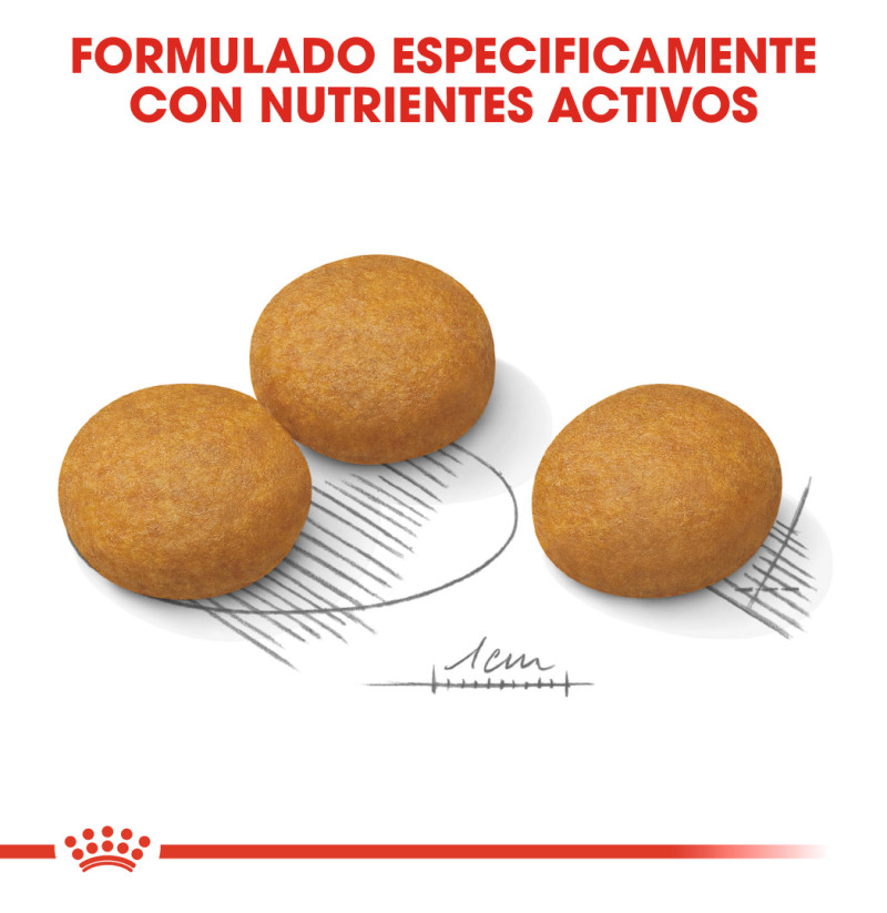 COMPONENTES ANALÍTICOS: Proteína bruta: 25,0% - Grasa bruta: 17,0% - Ceniza bruta: 5,9% - Fibra bruta: 1,6% - Por kg: Ácidos grasos omega 6: 36,0 g incluyendo ácido gamma linolénico: 0,3 g - Ácidos grasos omega 3: 11,4 g incluyendo EPA/DHA: 4,0 g.