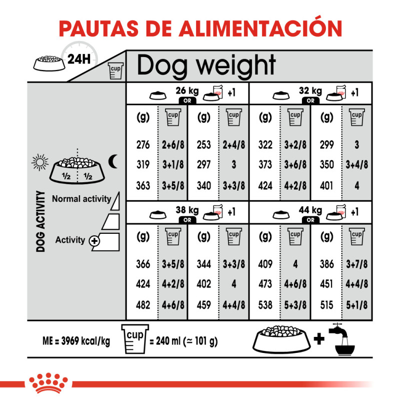 PESO DEL PERRO | ACITIVDAD BAJA | ACTIVIDAD NORMAL | ACTIVIDAD ALTA |