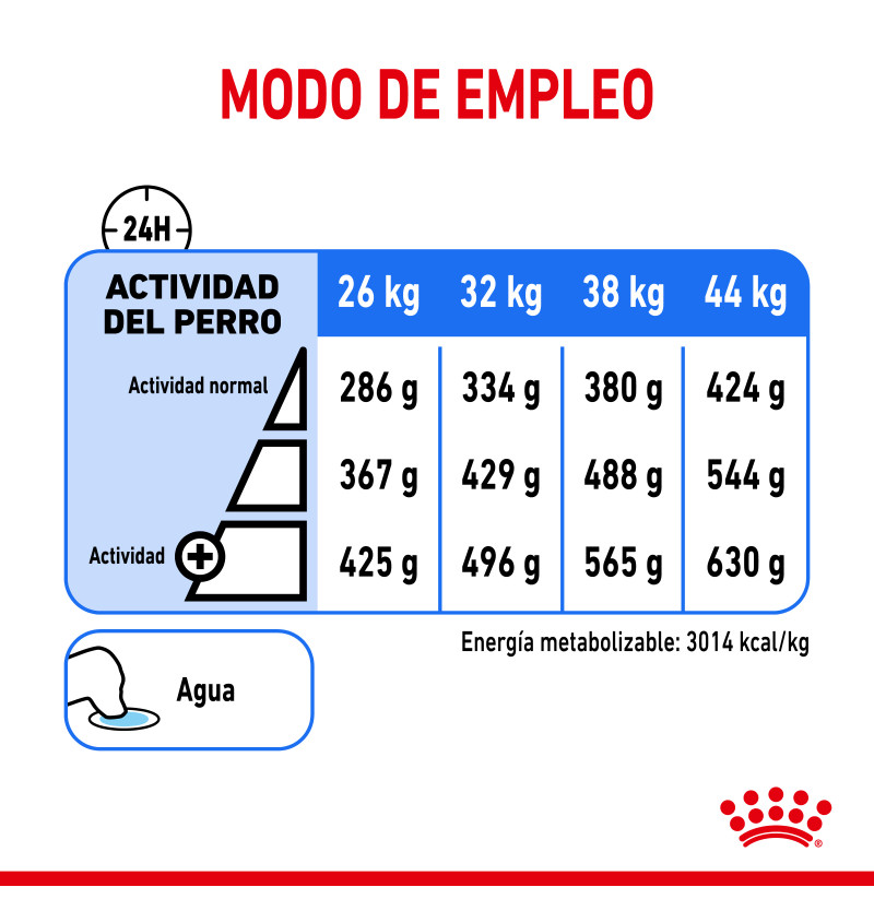 PESO DEL PERRO | SIN EJERCICIO | ACTIVIDAD NORMAL | ALTA ACTIVIDAD |