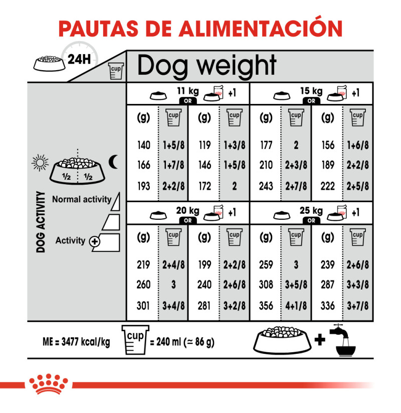 PESO DEL PERRO | ACTIVIDAD BAJA | ACTIVIDAD NORMAL | ACTIVIDAD ALTA |