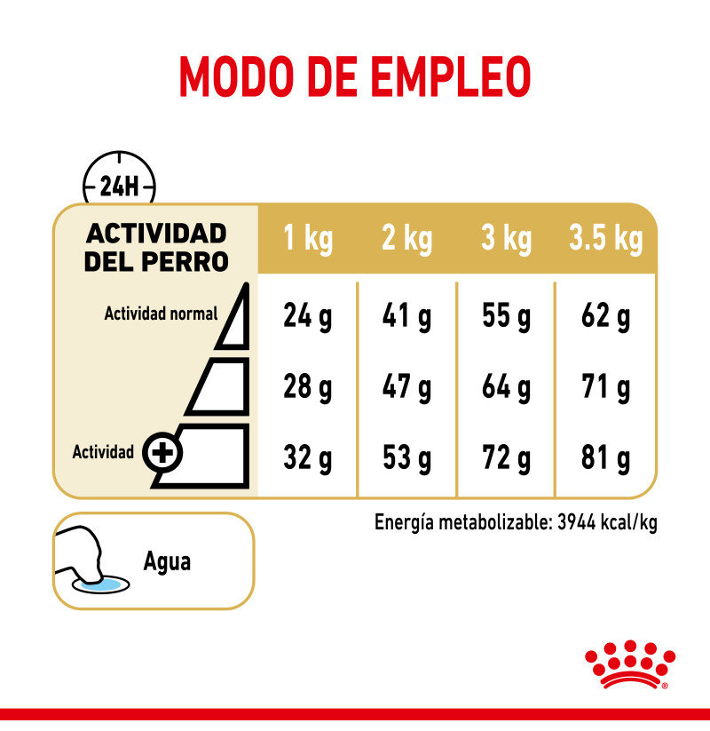 PESO DEL PERRO | ACTIVIDAD BAJA | ACTIVIDAD NORMAL | ACTIVIDAD ALTA |