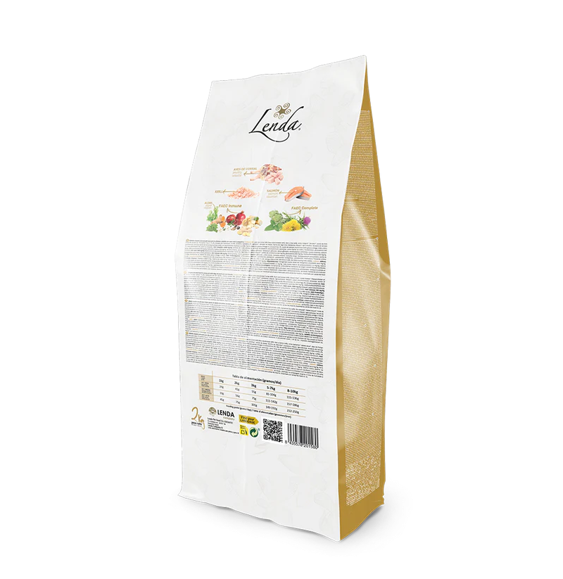 Lenda Mini Meat & Fish alimento completo a base de pato, pavo y oca, para perros adultos de talla mini o pequeña y para aquellos de tamaño medio que prefieran croquetas más pequeñas.