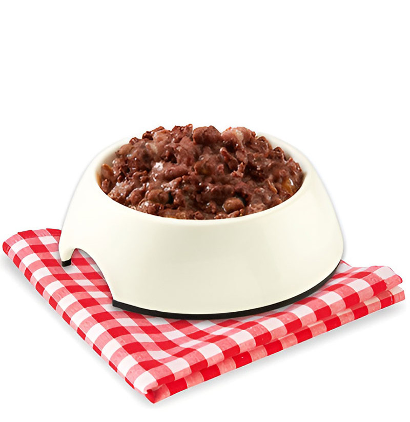 Alimento monoproteico de intenso sabor campestre del jabalí. Única fuente de sabrosa proteína cocinada al vapor en un alimento completo.