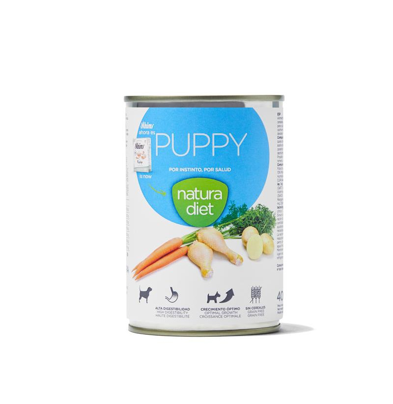 NATURA DIETAlimento completo y natural, sin cereales, en forma de paté elaborado para cubrir las necesidades de los cachorros acompañándolos desde el destete hasta la edad adulta.