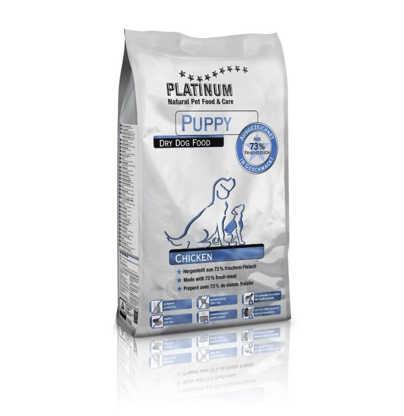 Platinum para perros cahorros, es un alimento natural que se elabora con un 73% carne fresca de pollo, utiliza el arroz como ingrediente de alta calidad como aporte de carbohidratos.