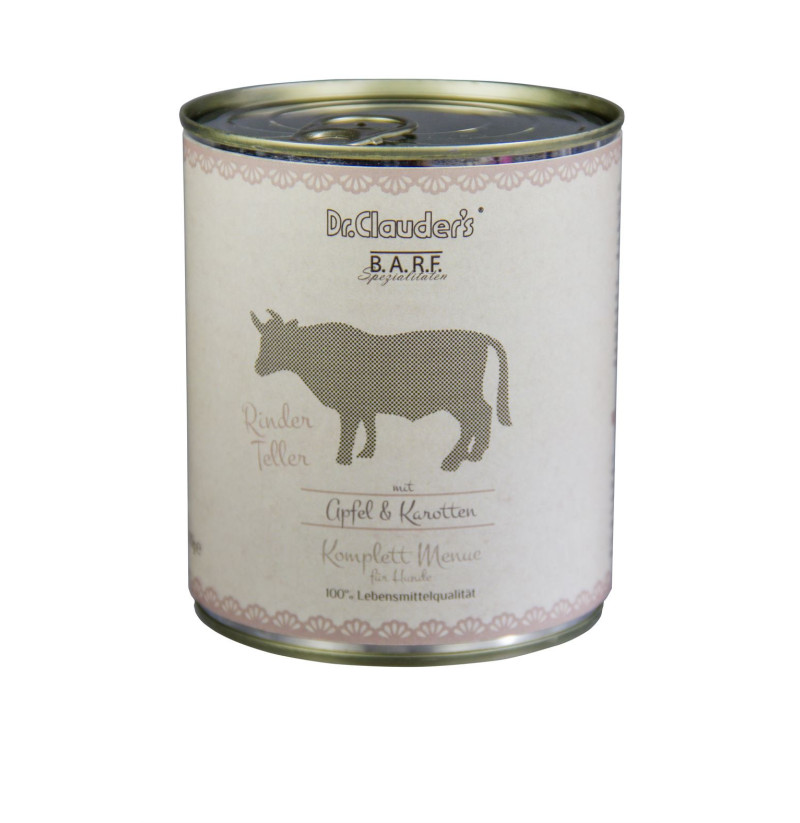 La Lata Dr. Clauder B.A.R.F. Estofado de Ternera es un alimento húmedo de alta calidad, formulado bajo los principios de la dieta B.A.R.F. (Biologically Appropriate Raw Food, o Alimentación Biológicamente Apropiada Cruda), para perros que necesitan una nutrición rica en proteínas animales y sin cereales. Este estofado de ternera es ideal para perros que requieren una dieta natural, sin aditivos artificiales y fácil de digerir. Perfecta para mantener la salud general de tu perro, apoyando su sistema inmunológico, digestivo y muscular.