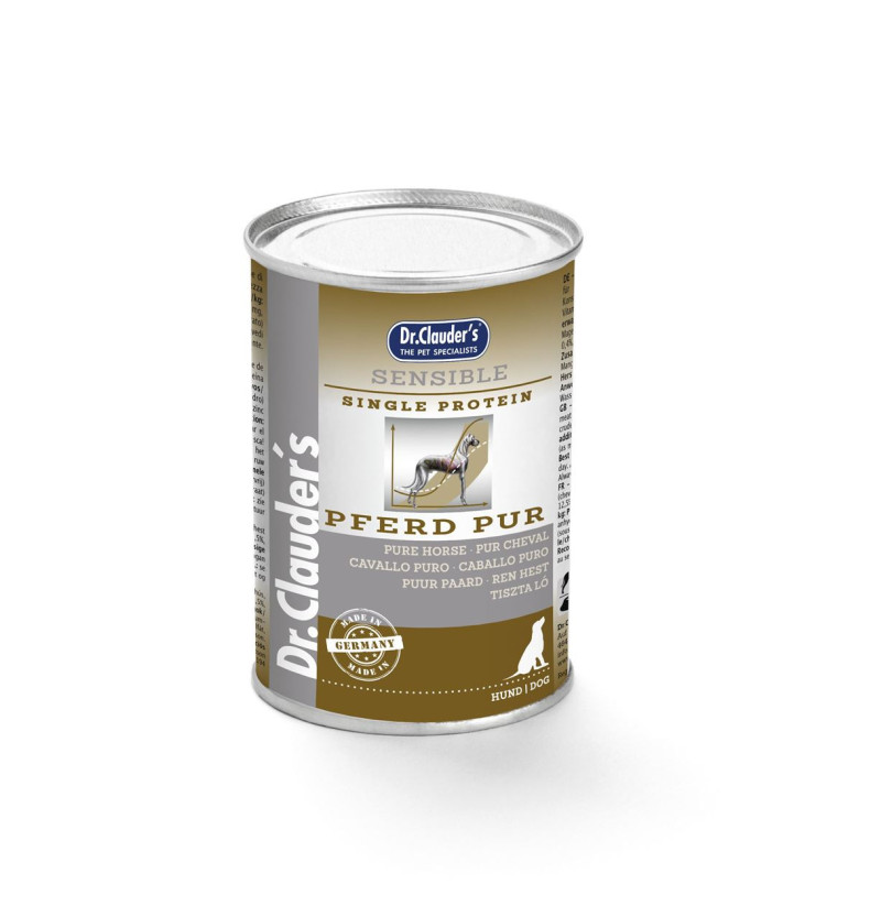 La Lata Dr. Clauder Sensitive Puro Caballo es un alimento húmedo premium que ofrece una única fuente de proteína de alta calidad, ideal para perros con alergias, intolerancias alimentarias o digestiones sensibles. Esta fórmula monoproteica está elaborada exclusivamente con carne de caballo, proporcionando una opción nutritiva, natural y equilibrada.