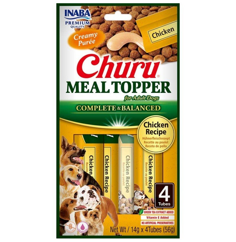 Churu Meal Topper Receta de Pollo es un complemento alimenticio premium que combina pollo de granja en una textura cremosa. Diseñado para añadir sabor y nutrición a la comida habitual de tu perro, este topper es ideal para perros exigentes, aportando hidratación adicional y un sabor irresistible.