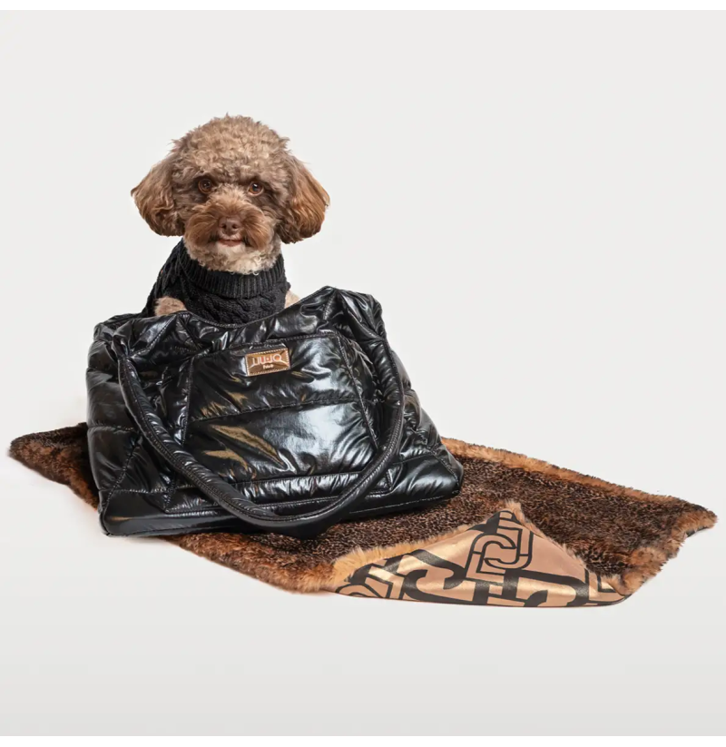 Bolsa‐transportín negro Liu·Jo Pets superligero de nailon, elegante y cómodo para perros pequeños.