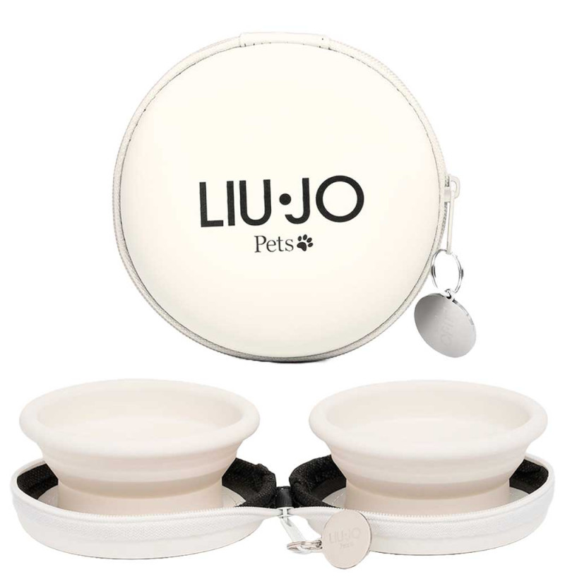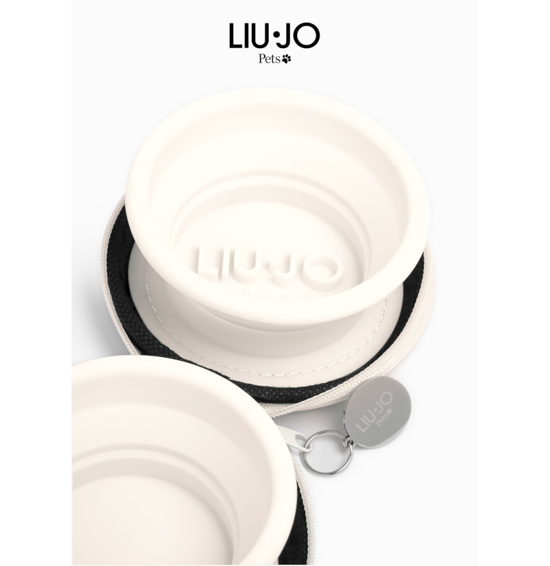 LIU·JOEstuche con Bowls de viaje plegable de color Blanco Natural Liu·Jo Pets: dos recipientes extraíbles en estuche compacto.