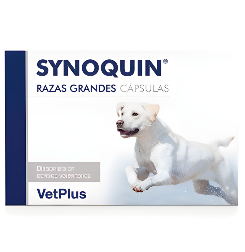 Synoquin Large Breed Capsules de VetPlus es un complemento nutricional formulado para perros de razas grandes, que ofrece un soporte completo al sistema articular. Combina nutracéuticos clave como glucosamina, condroitina y Dexahan® para ayudar a reducir el desgaste del cartílago, mantener la movilidad y mejorar la calidad de vida de tu mascota.