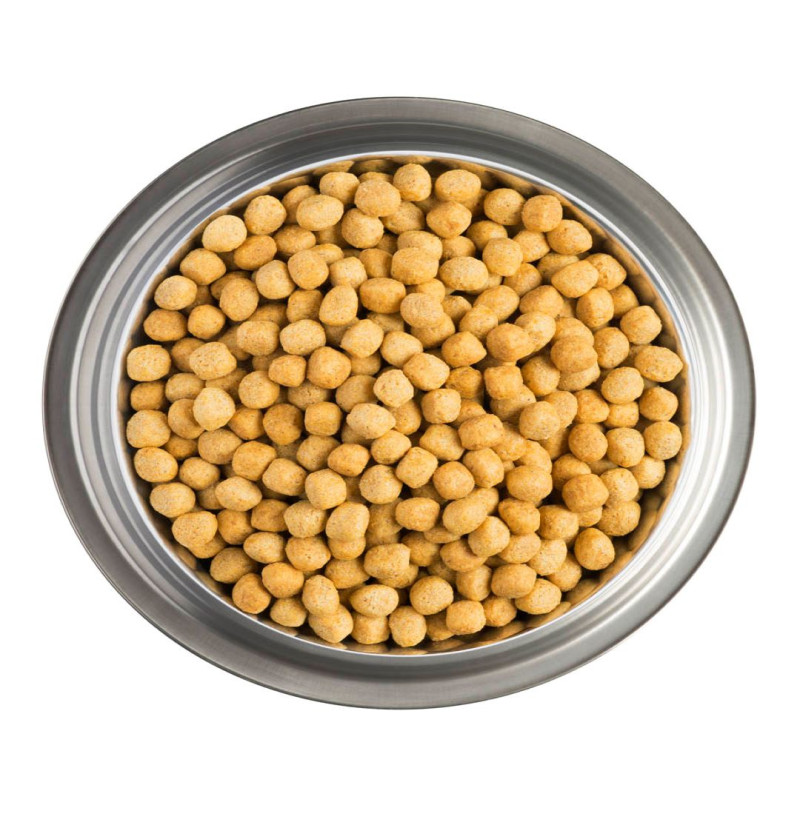Harina de maíz*, harina de soja*, proteína de ave deshidratada, cebada*, harina de gluten de trigo, fibra de guisante*, celulosa, hidrolizado de proteínas, sustancia aromatizante, sustancias minerales y grasa animal. *Fuente de carbohidratos.