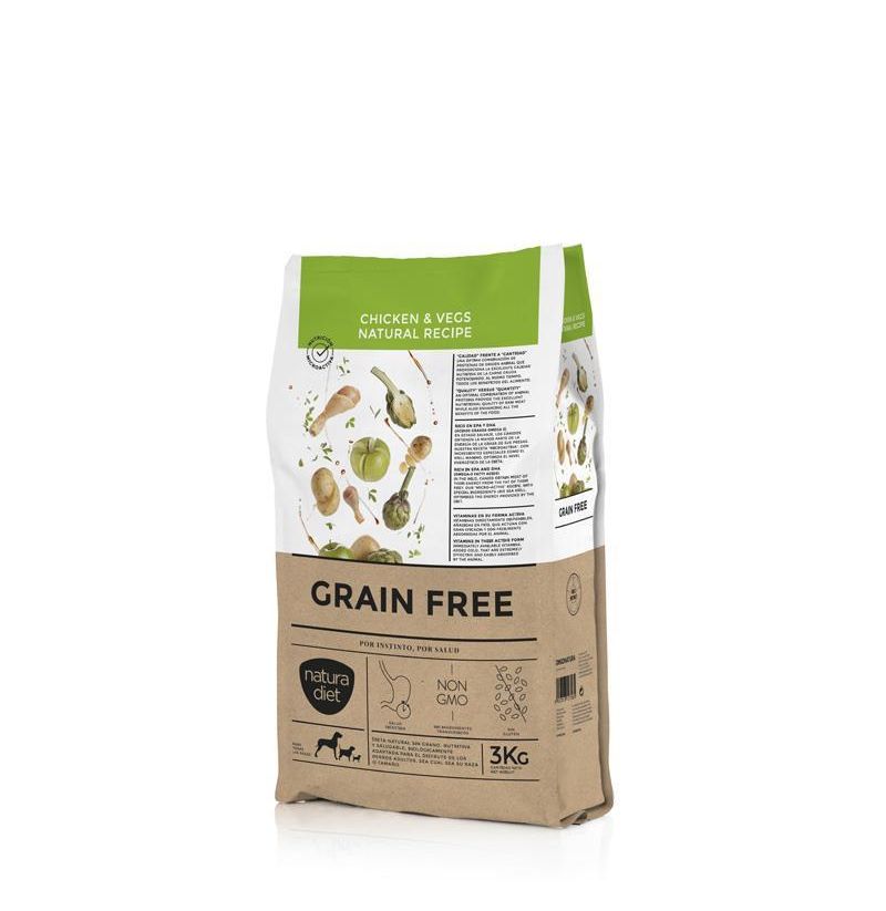 Natura diet Grain Free Chicken & Vegetables. Pienso natural para perros sin cereales, con ingredientes 100% naturales. Indicado para perros adultos de todas las razas y tamaños.