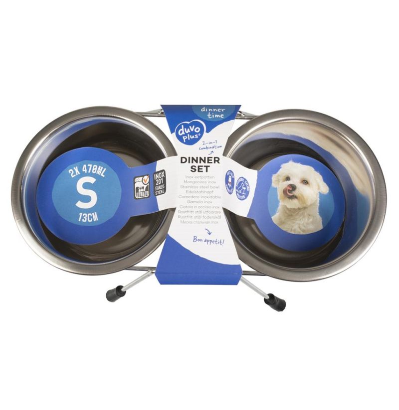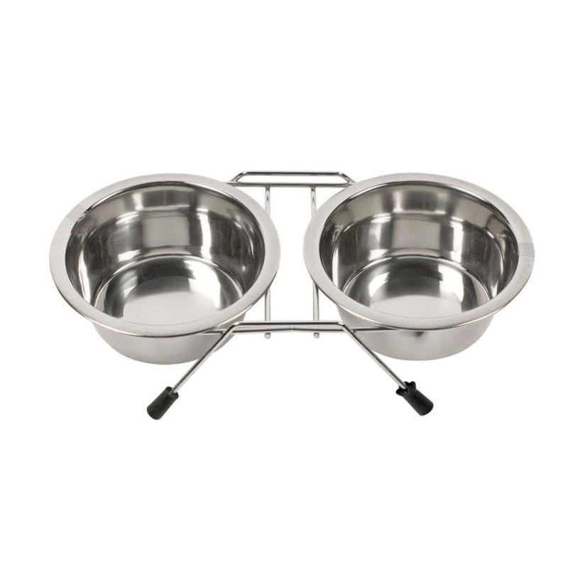 Duvo soporte con comederos acero para perros y gatos