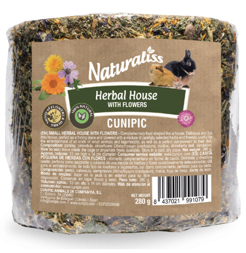 La casita de hierbas con flores de Naturaliss es un pequeño snack en forma de casita. Esta deliciosa casa de hierbas está cubierta de una mezcla de hierbas y flores cuidadosamente seleccionadas como perejil, caléndula, siempreviva o malva