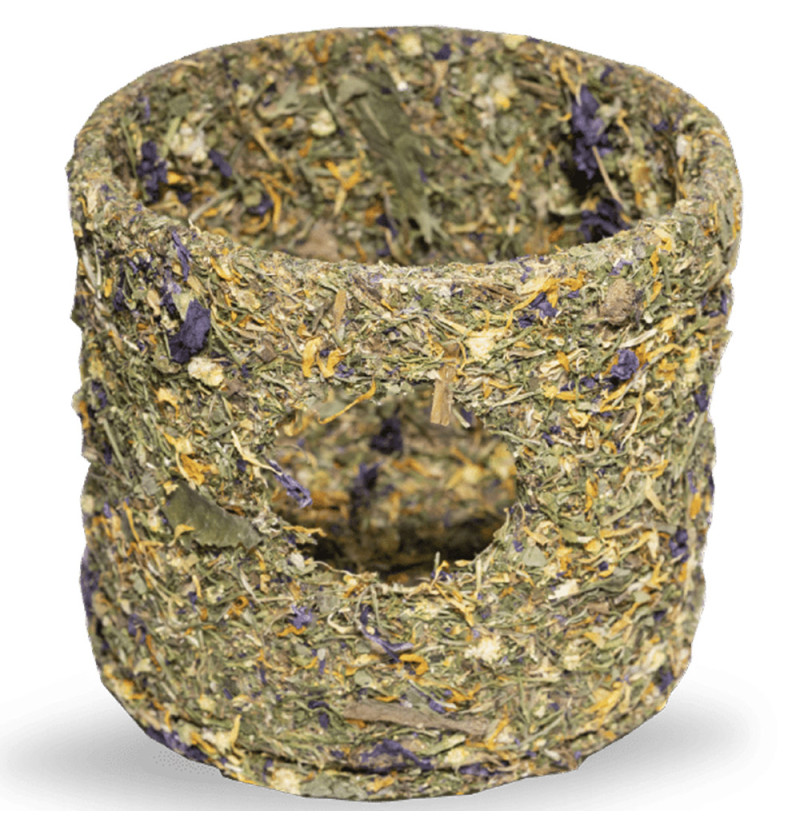 Alimento en forma de casita. Esta deliciosa casa de hierbas está cubierta de una mezcla de hierbas y flores cuidadosamente seleccionadas como perejil, caléndula, siempreviva o malva. Este producto no solo es ideal para ser roído, ya que también puede ser el perfecto aliado para el entrenamiento o, como escondite o zona de juegos. Además, esta compuesto al 100% por ingredientes naturales como: vegetales, cereales, hierbas, flores y semillas… por lo que se puede comer y digerir todo el snack completo, de pies a cabeza.