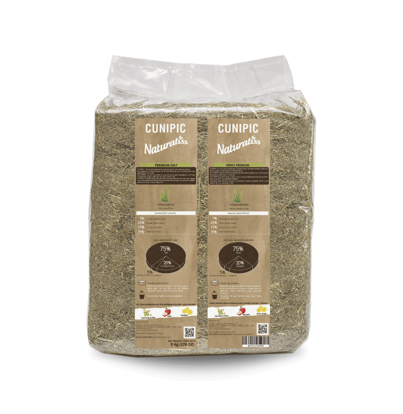 Naturaliss Heno Premium Fibra 5 Kg Cunipic, es un heno destinado a roedores y conejos que saca lo mejor de la naturaleza. Es un heno recolectado en prados cercanos a las montañas de los Pirineos, que lleva salud y diversión a tu mascota, para que de esta manera crezca sana, fuerte y feliz