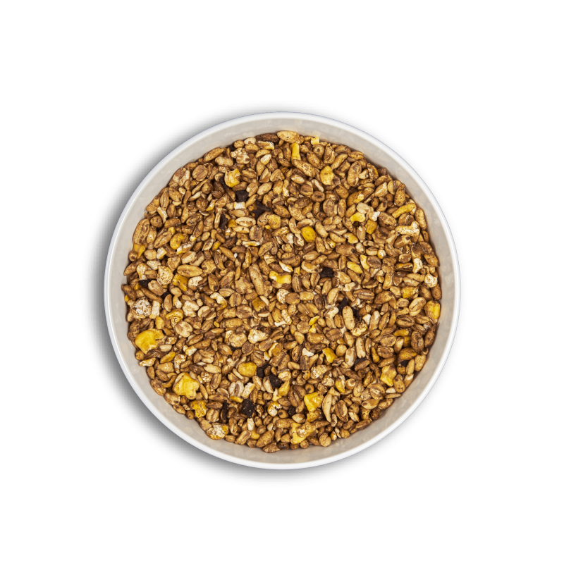 Composición: Cebada, maíz inflado, copos de trigo, aceite de girasol, melaza de caña de azúcar y remolacha deshidratada.