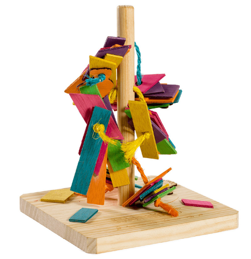 Materiales naturales como la madera de abedul i las cuerdas y eso hace que sea ideal para roer i propiciar el desgaste y cuidado dental. Además su diseño atrae a pequeños roedores y conejos y hace les invita a investigar y jugar con las extensiones coloridas de madera y eso es maravilloso para la estimulación del cerebro de estos pequeños animales.