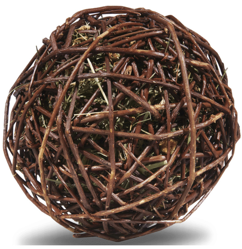 - Bola de heno para roedores que sirve como complemento alimenticio.